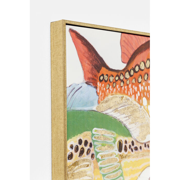 Material: Impresión de imagen: Algodón (lona), Marco: Abeto Madera maciza Acabado natural, Poliuretano, Otros: Pintura acrílica, detalles pintados a mano