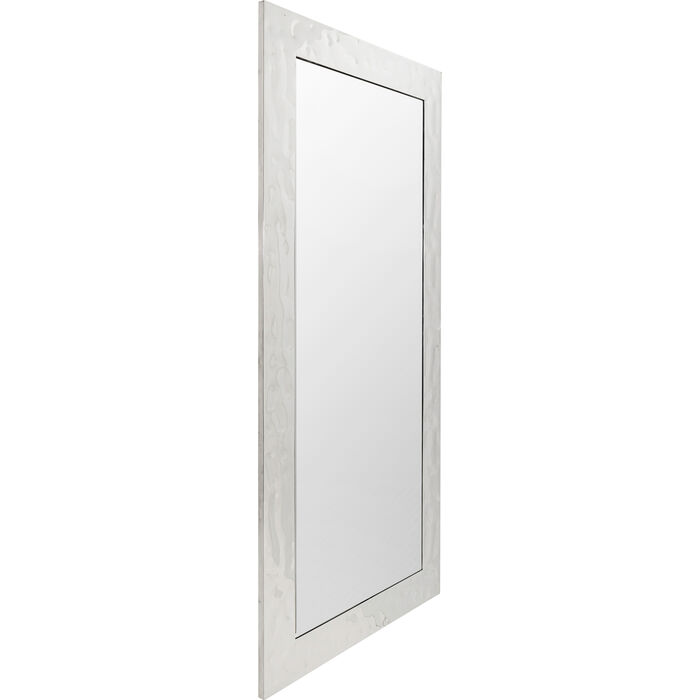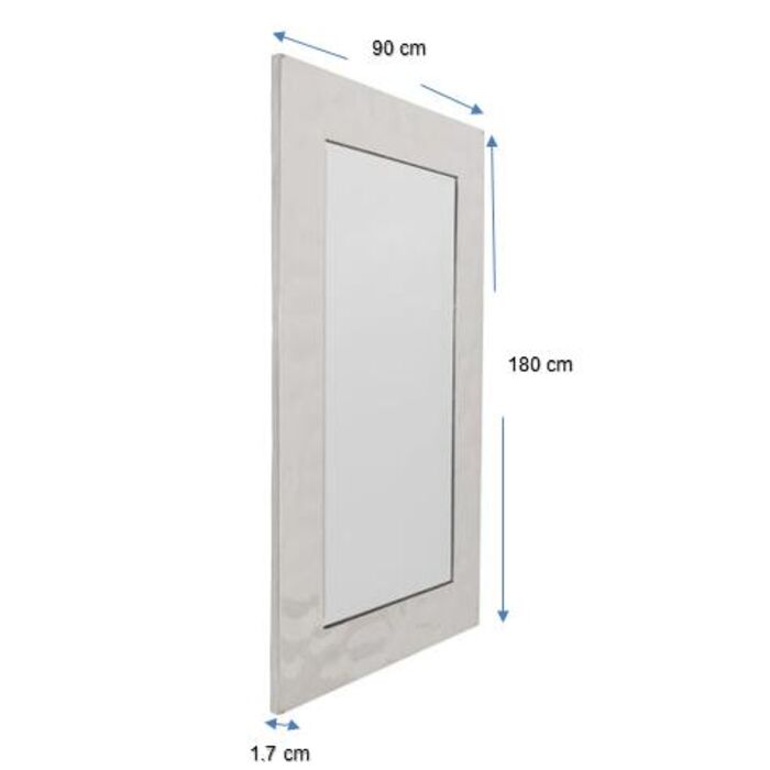 Material: Cristal: Vidrio Reflectante, Marco: Acero inoxidable lacado, Pared trasera: Tablero de fibra densidad media Lacado, para montaje en pared horizontal y vertical, hecho a mano, cada pieza es única, montado, 155,70 x 65 x 7,50 cm superficie de espejo