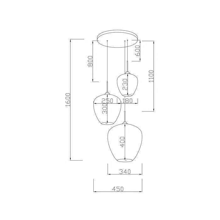 Material: Baldaquín: Acero pulverizado, Soporte: Acero pulverizado, Pantallas: Vidrio Galvanizado, 160 cm largo del cable, 40 cm tulipas, 30 cm tulipas, 18 cm tulipas, 35 cm baldaquín, altura ajustable, cable cobertura de plástico, parcialmente desmontado,