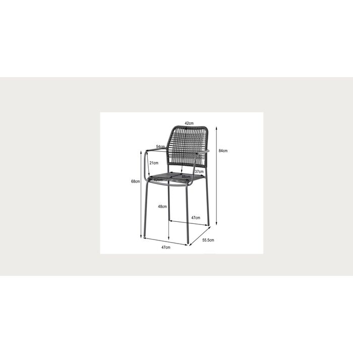 Material: Soporte: Acero pulverizado, Respaldo: Polietileno, Asiento: Polietileno, 110 kg capacidad de carga máxima, montado, 44 cm altura asiento,