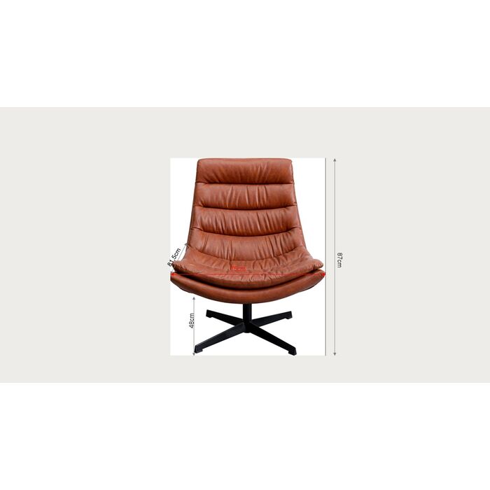 El sillón giratorio Lido es un original mueble de diseño de aspecto moderno y clásico a la vez. Con su cómodo tapizado de espuma y su funda marrón, es un elemento confortable y decorativo para cualquier salón. Las patas de acero con recubrimiento en polvo aportan estabilidad y elegancia al sillón. El sillón puede girar 360° y tiene una altura de asiento de 38 cm. Con el sillón giratorio podrá relajarse con estilo e impresionar a sus invitados. El sillón también es ideal como mueble de asiento original en el estudio o la recepción. Ya sea como mueble de asiento funcional o como mueble de diseño original, el sillón giratorio Lido es una pieza imprescindible para cualquiera que valore el diseño elegante y la comodidad.